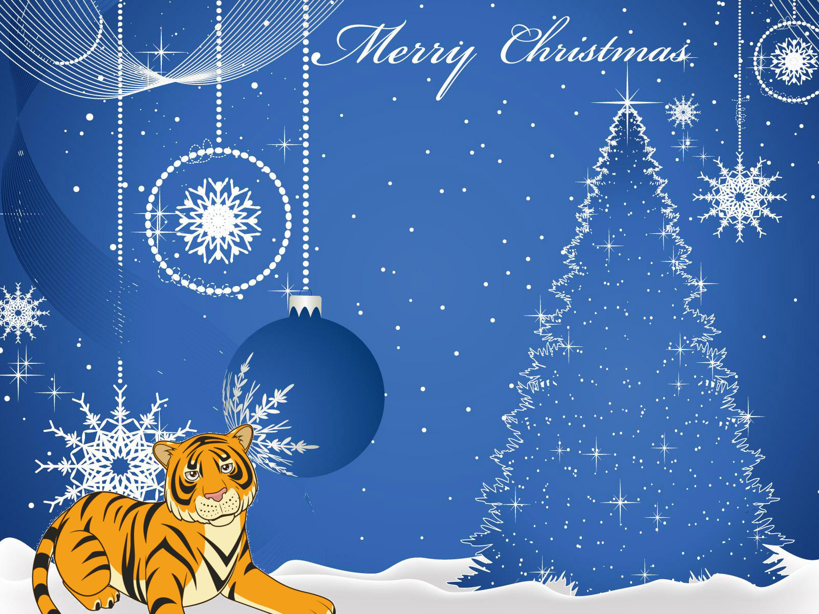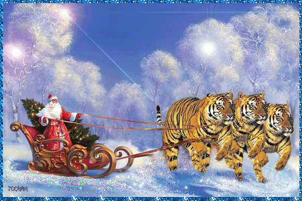 A magnificent animated Christmas card in the year of the tiger with congratulations