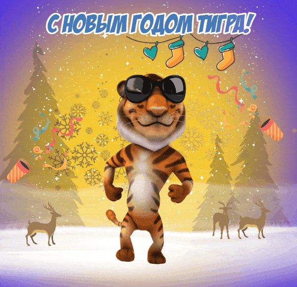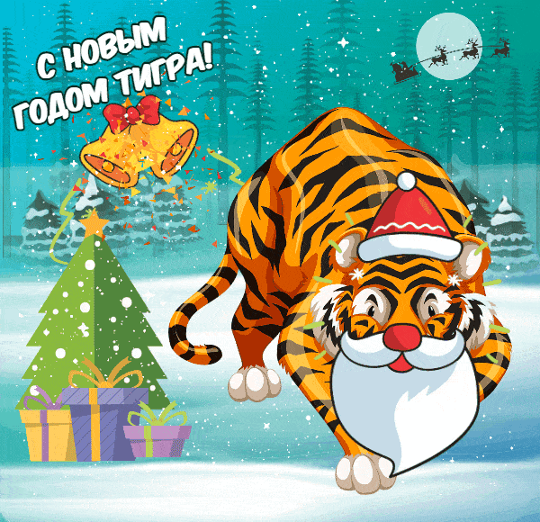 Великолепная Новогодняя анимационная открытка в год тигра онлайн