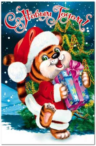 Оригинальная Новогодняя открытка с поздравлением в год тигра