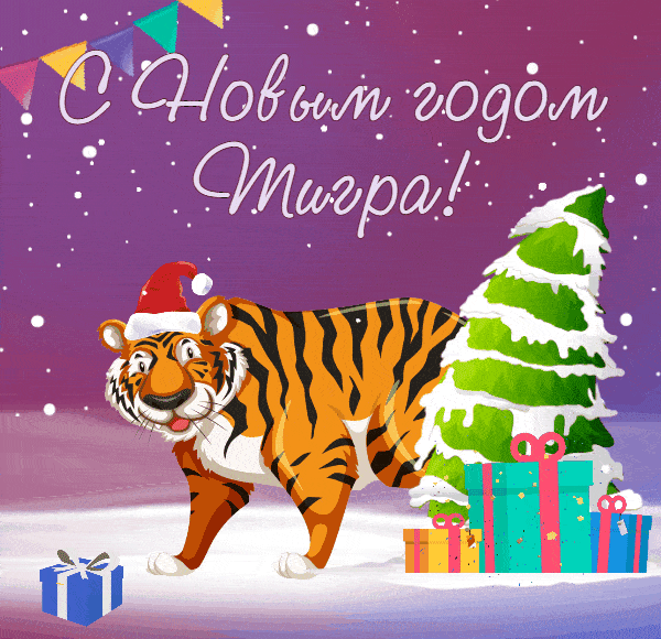 Новогодняя gif открытка в год тигра 2026 онлайн