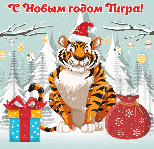Красивая Новогодняя gif открытка с поздравлением в год тигра