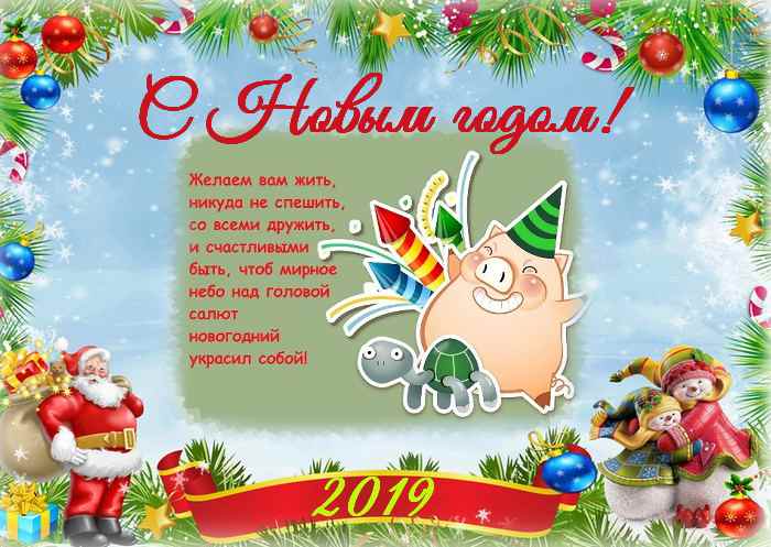 Поздравьте друзей, родных, близких людей и коллег с Новым годом, годом кабана, годом свиньи! А мы вам в этом поможем!